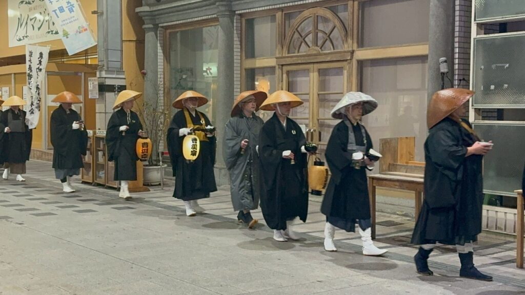雨天の中での托鉢修行となりましたが、町ゆくみなさまには寒空の下にも関わらず、足を止めて施財をしていただき、人のあたたかさを感じる托鉢となりました。